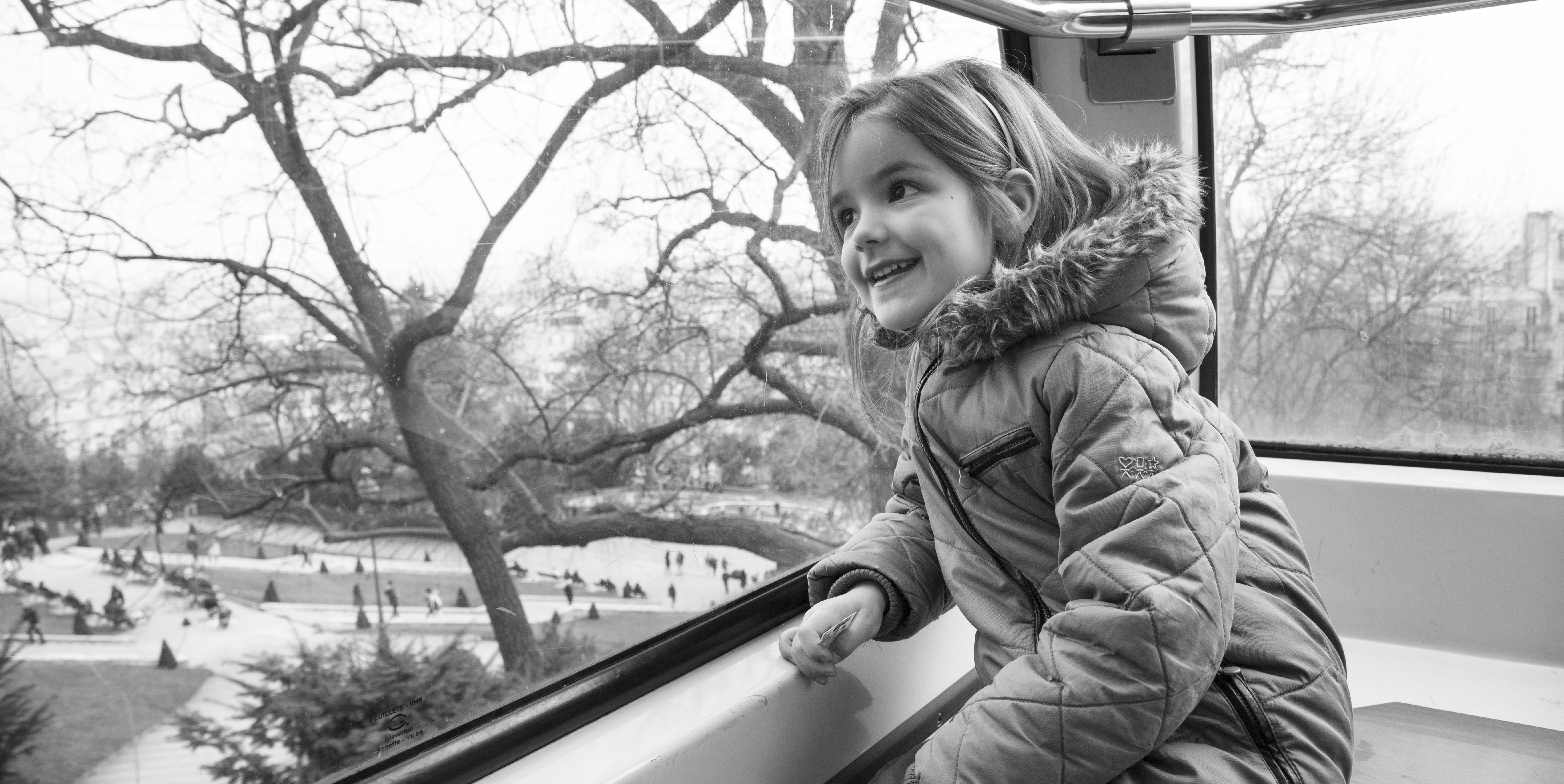 Vite à la sortie de l’école nous nous dirigeons vers le Mac Do alors que les copines prennent le chemin de la Cour des pâtes. Cet après-midi, Hortense et moi partons faire une petite virée à Paris. Dans le RER, Hortense aime répéter le nom des stations que la voix enregistrée égraine sans relief. Metro Anvers. Passer le long de l’Elysée Montmartre dévastée. Remonter la ruelle pavée au milieu des marchands de souvenirs. Alors que nous faisons un détour par le marché Saint-Pierre, Hortense rêve devant les tissus brillants du rayon des déguisements. En bas des escaliers qui montent au Sacré-Cœur, le manège est silencieux. Il se met en route pour Hortense, juchée sur un cheval au premier étage, sous le toit. Le manège est à elle. Elle tourne au rythme de ses rêves.