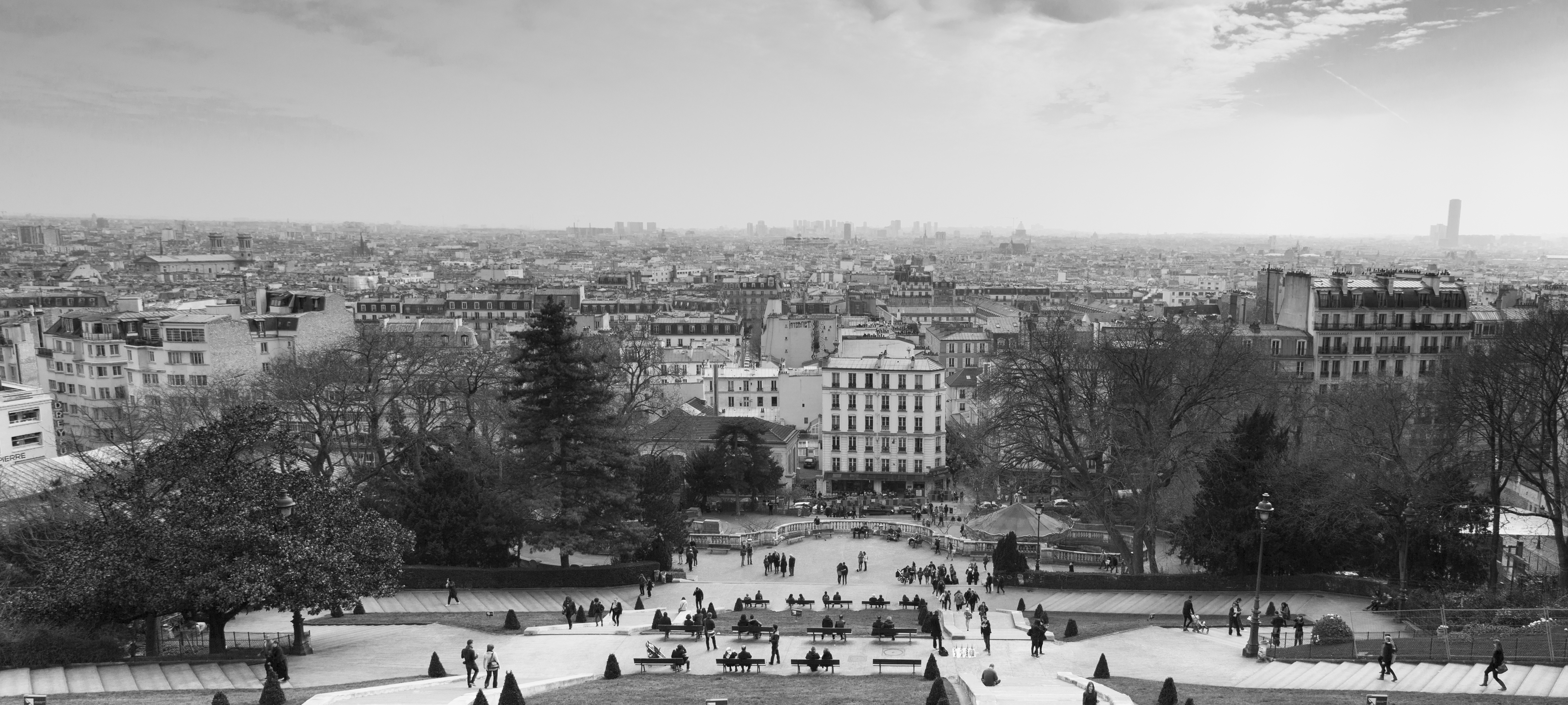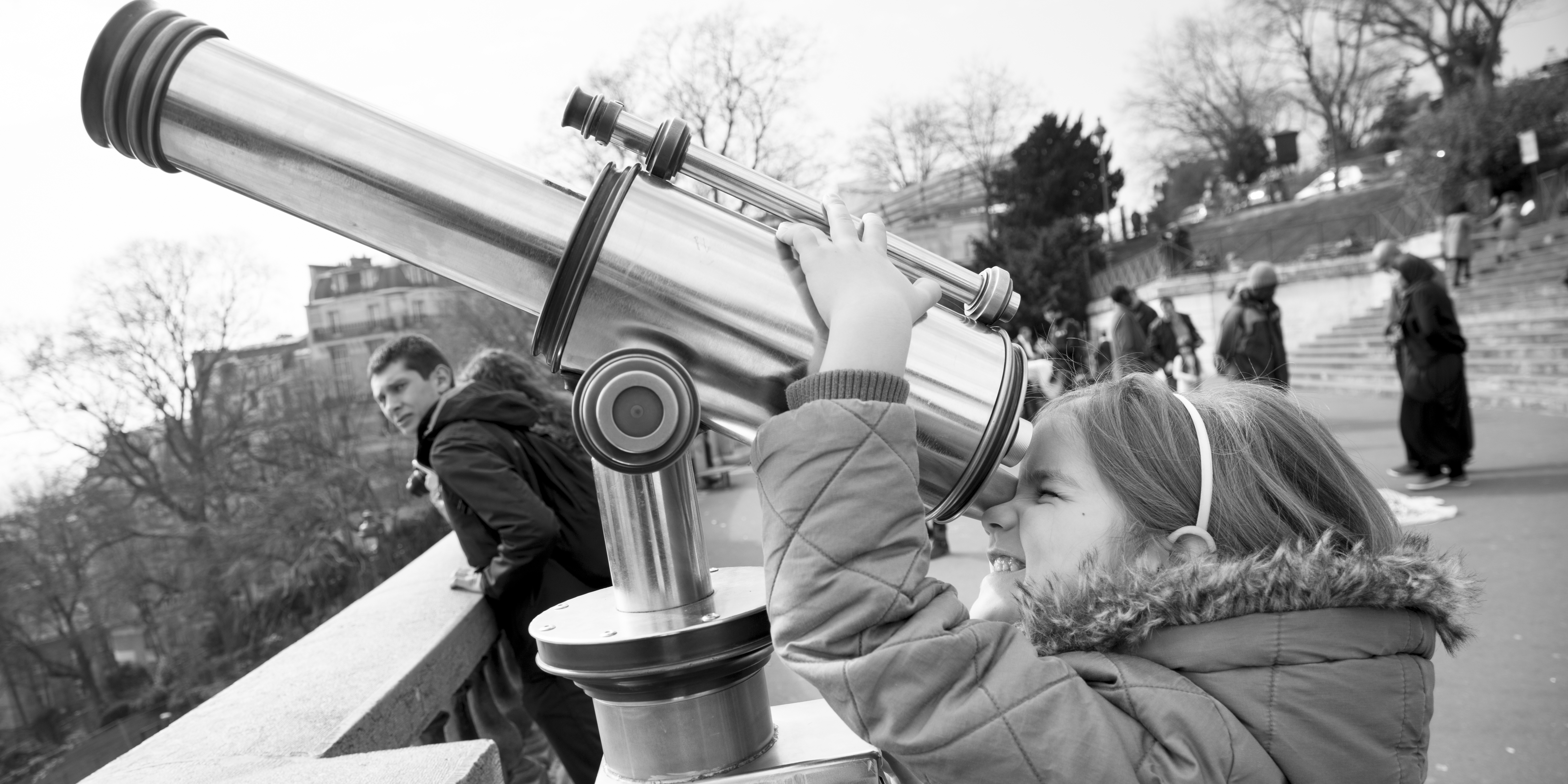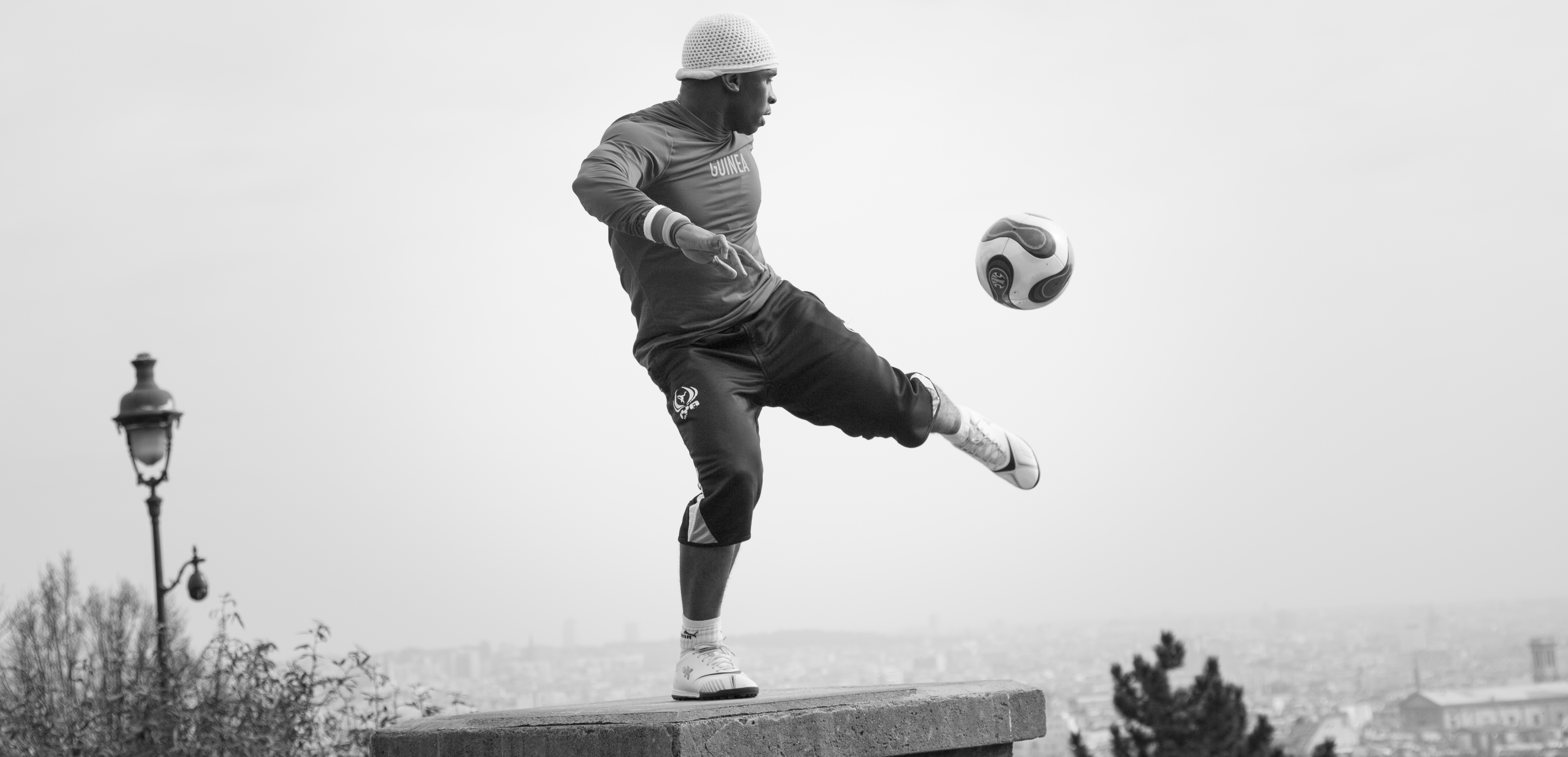 Magie du funiculaire et découverte de Paris vu d’en haut. La ville s’étale dans une légère brume laiteuse. Le soleil pointe. Les manteaux se portent à bout de bras. Avant de partir, un haut-parleur crache une musique rythmée. Tee-shirt de la Guinée et bonnet sur la tête, un jeune homme entame un numéro d’équilibriste avec un ballon de foot. Hortense ne le lâche plus des yeux. Les smartphones font des vidéos qui seront rapidement postées sur Facebook. Quand le footballeur équilibriste escalade le réverbère en faisant tourner le ballon sur un stylo qu’il tient dans bouche, Hortense n’en revient pas. Mais comment il fait maman ?!