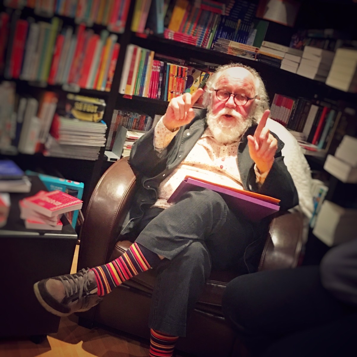 Quelle chance qu’il ait pris le temps de passer quelques heures chez Inkipit. Demain, il sera à la FNAC du Créteil Soleil. Avec sa barbe blanche et sa bonne humeur, il se glissera sous les néons au milieu des sélections de Noël. C’est la rançon du succès.