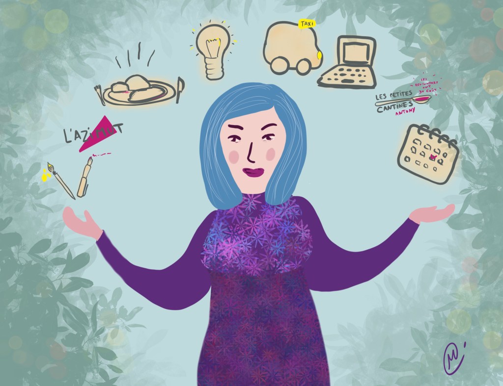 Priorité à Eglantine et à ses conduites. Puis le travail au théâtre, qui a l’avantage, en plus d’être sympathique, d’être rémunéré. Je n’oublie pas les Petites Cantines Antony, parce que j’en porte le projet avec Hélène et Nathalie. Il y a aussi toutes ces démarches administratives. Les repas parce que ça revient deux fois par jour. Tous les jours. Les moments privilégiés avec les filles. Petits-déjeuners, retours d’école – c’est à cette occasion qu’elles livrent le plus d’anecdotes sur leurs journées. Les dîners sont également souvent très animés. Nous laissons libre cours à une gentille folie et aux rires.