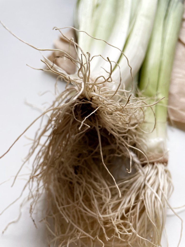 J’aime l’élégance du poireau, ses longues feuilles alanguies, ses racines ébouriffées, ses blancs doux, ses verts tendres.