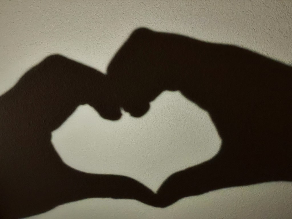 Hortense joue avec les ombres. Comme je m’enthousiasme, elle m’offre finalement un coeur, gros comme ça ! Il prend toute la surface du plafond.