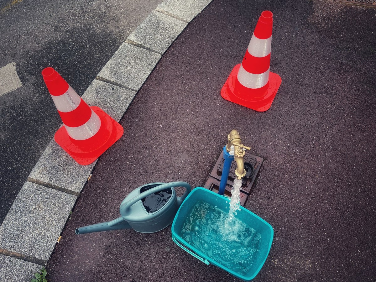 L’ancienne canalisation a lâché vers 5h ce matin. Une équipe est déjà arrivée pour les réparations. Ils vient d’installer un point d’eau en face du restaurant italien au début de la rue. Déjà, un voisin revient avec deux seaux remplis d’eau. Chacun rentre chez soi à la recherche de contenants pour rapporter de quoi tirer les chasses d’eau, faire un brin de toilette et préparer le café du matin.