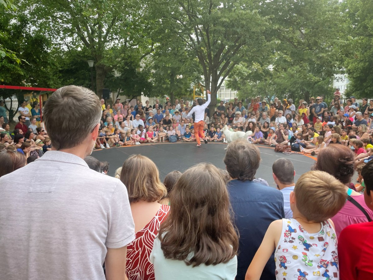 Dans notre ville, comme ailleurs, la saison des spectacles de rue bat son plein. Musique, cirque, théâtre, le spectacle vivant se déploie dans les parcs, sur les places et dans les allées. Les sonos résonnent contre les falaises minérales des immeubles. Les voisins pestent contre le bruit. Les enfants se faufilent. Les badauds s’arrêtent. L’art s’installe devant les yeux de tous.