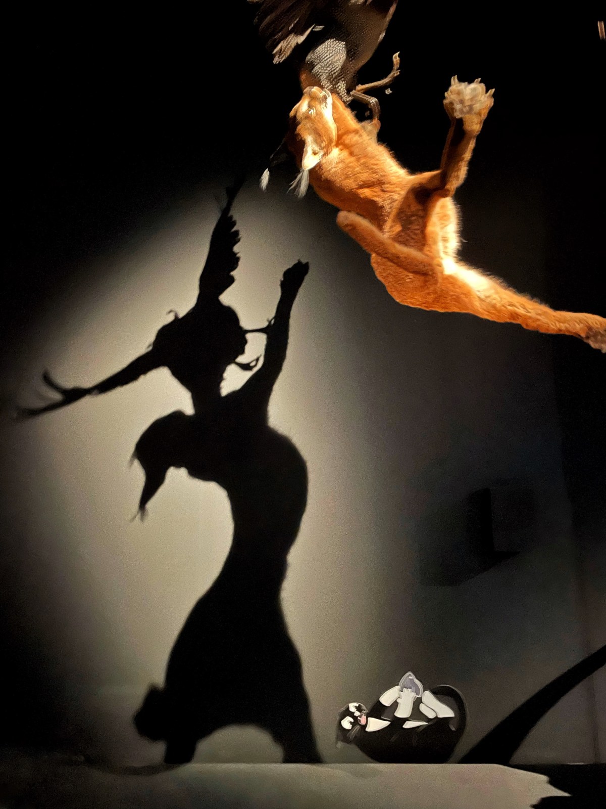 Pour la chorégraphie de l’ombre qui s’anime tel un danseur mystérieux derrière le félin en pleine chasse, statufié au moment où il attrape sa proie.