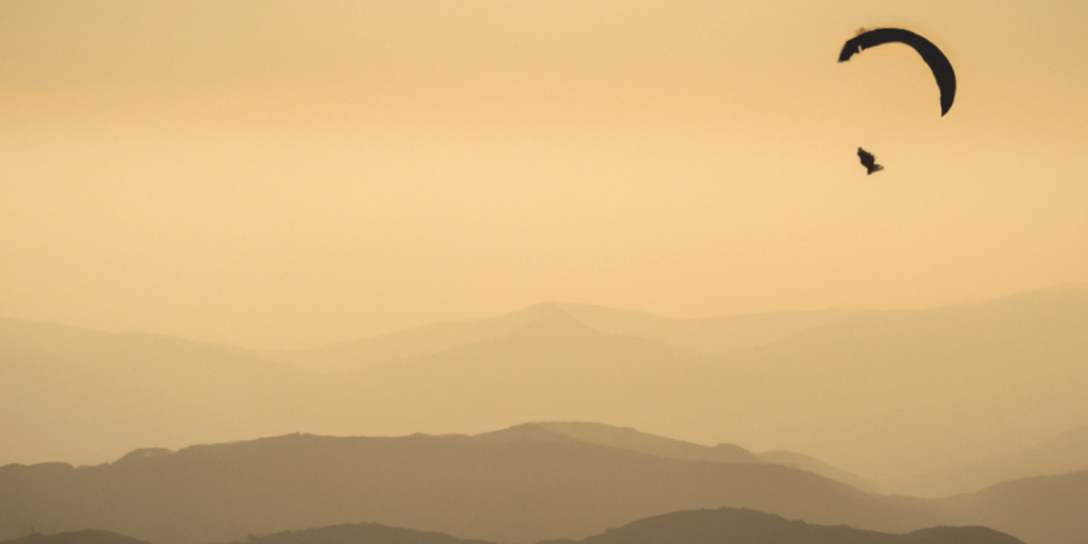 Un peu avant le col, Nico s’engage sur un chemin caillouteux à flanc de montagne. Les chaos finissent de retourner l’estomac de Sophie. Alors elle se concentre sur les flamboiements vifs qui apparaissent derrière le ciel de plomb, annonçant le lever du soleil. La camionnette s’arrête enfin dans un renfoncement du chemin. Sophie charge sa sellette et sa voile sur son dos. Le groupe monte en file indienne la pente raide qui mène à la zone de décollage. Les silhouettes sombres, courbées sous le poids des gros sacs, se détachent dans les premiers rayons du soleil qui paraît de l’autre côté de la crête.