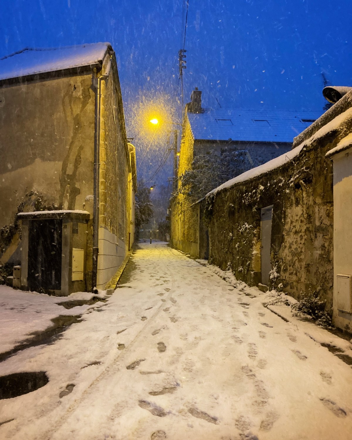 Alerte orange pour flocons blancs. La neige s’est invitée ce matin sans un bruit. Elle est restée jusqu’au soir. Sur l’autoroute, on roulait au pas. Dans les rues, les boules de neige fusaient.