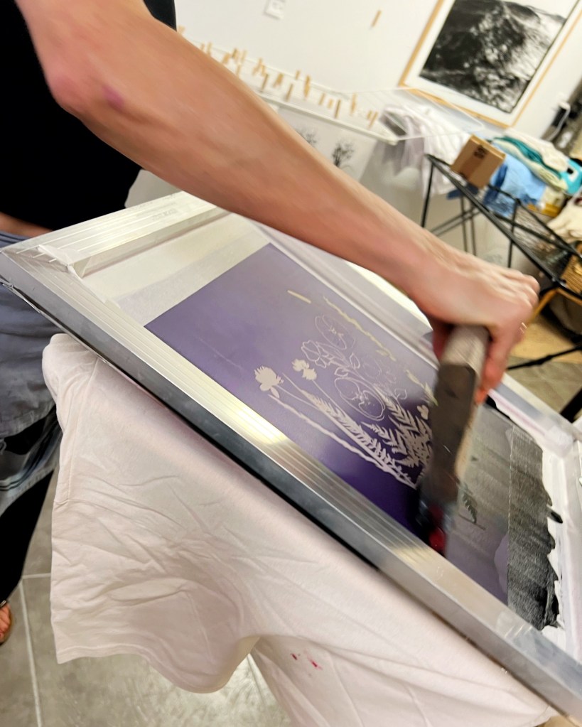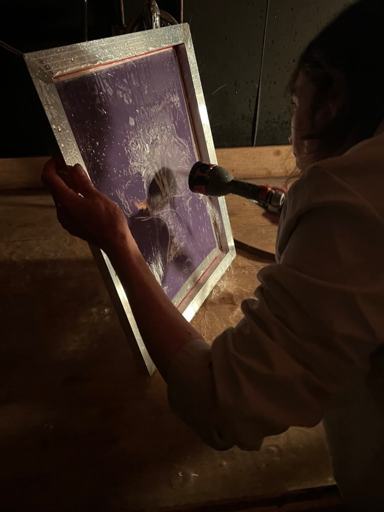 En haut de la montagne, une navigatrice a troqué son bateau pour saisir l’écume des montagnes. Peindre à l’encre de chine avec les plantes des alpages. Imprimer le brisant d’une crête dans la brume matinale. Elle accueille nos gestes hésitants dans un sourire bienveillant et partage cet art de la sérigraphie qu’elle maîtrise avec douceur.