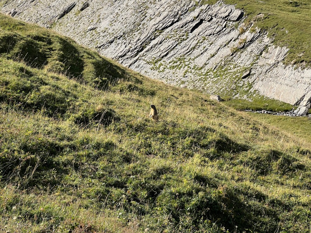 Le sifflement d’une marmotte et nos yeux fouillent la montagne. On s’arrête un instant. La tête dressée guette le moindre mouvement, disparaissant dans le sol si le danger se rapproche.