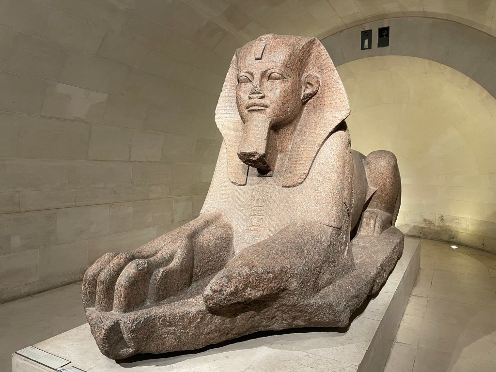 Nous nous quittons sous la pyramide. Elle veut rendre visite aux peintres français du XIVè siècle. Nous nous dirigeons vers l’Egypte antique. Nous la croiserons à nouveau un peu plus tard, devant des tableaux de Leonard de Vinci.