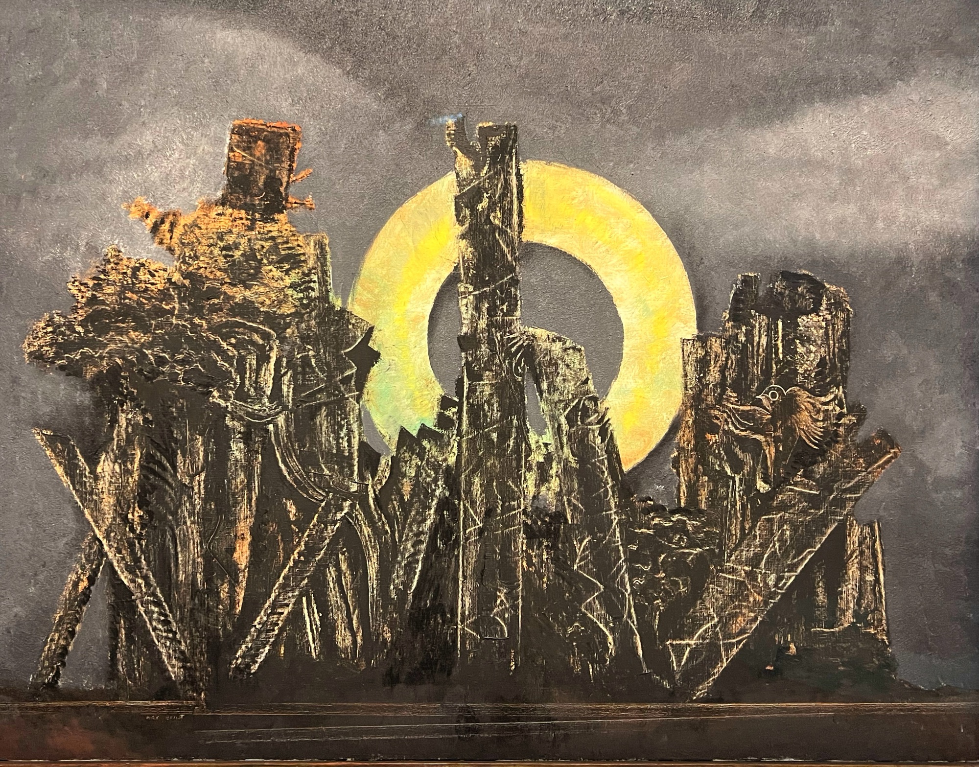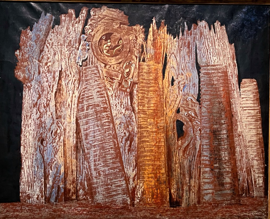 Et puis il faut aimer. Ce n’est pas mon courant favori même si la démarche est passionnante. Un artiste en particulier m’a pourtant fait énormément vibrer, Max Ernst. Je connaissais un peu, de loin, de nom. Une vraie rencontre. C’est une de ses œuvres, L’ange du foyer, qui a été choisie pour l’affiche de l’exposition. Personnellement, je suis restée subjuguée par ses forêts.