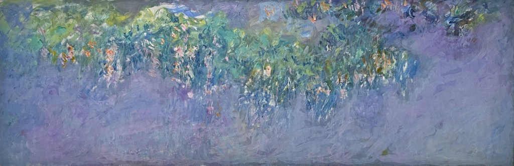 Nous n’attendons pas longtemps avant de rentrer dans la Fondation Louis Vuitton mais la foule est dense. Églantine et moi nous réfugions dans la musique de nos casques réducteurs de bruit. Rapidement harponnées par les couleurs de David Hocney, nous nous perdons de vue. Peu importe, nous savons que nous nous retrouverons à la fin. Chacune navigue à son rythme dans un océan de couleurs vibrantes.