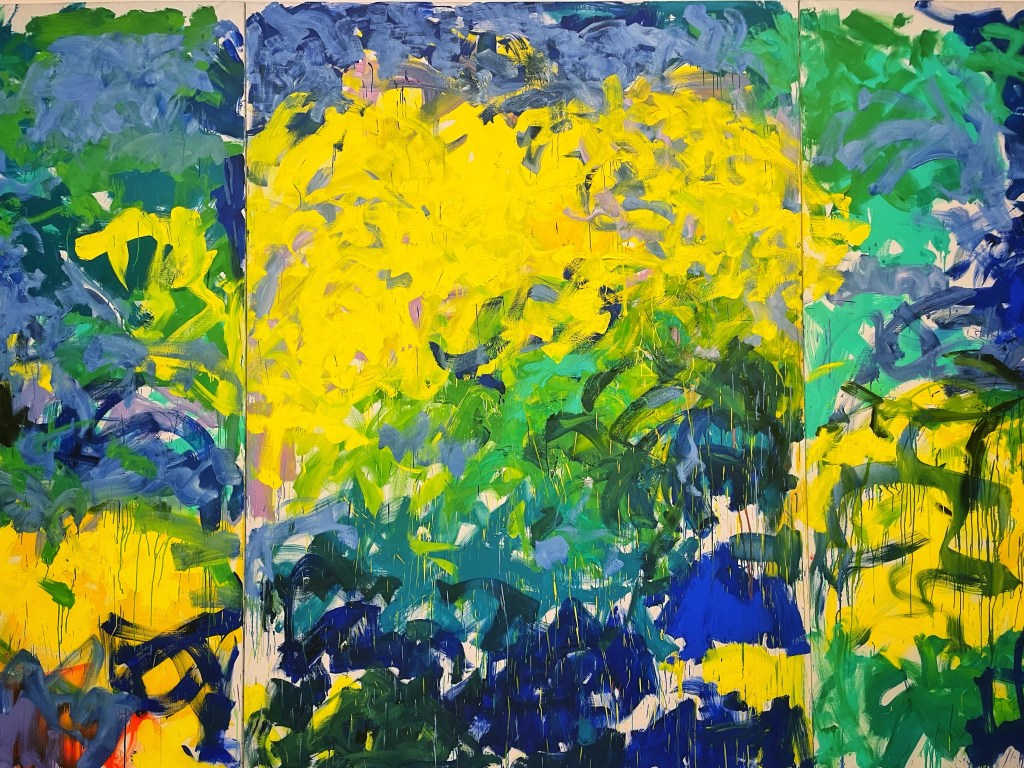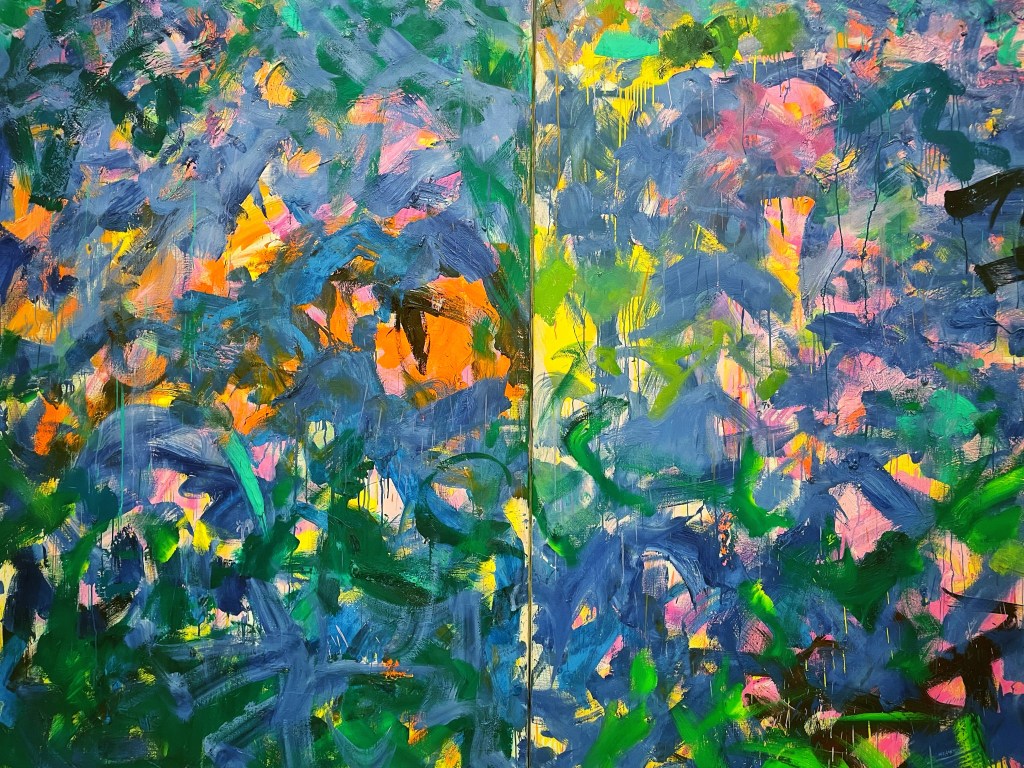 Les premières salles prennent des raccourcis bienvenus de Bradford à Los Angeles en passant par Londres, Berlin et Paris. On retrouve les fameuses piscines, les paysages californiens, les portraits baignés de lumière, la palette vive, les toiles immenses. Et commence l’éblouissement des couleurs. Une nature vibrante. David Hockney nous embarque dans sa vision de l’espace et du temps. Celui qui passe et celui qu’il fait. Les saisons défilent, obsessionnelles. Variations à l’infini de paysages récurrents d’où jaillissent des vagues de lumières.