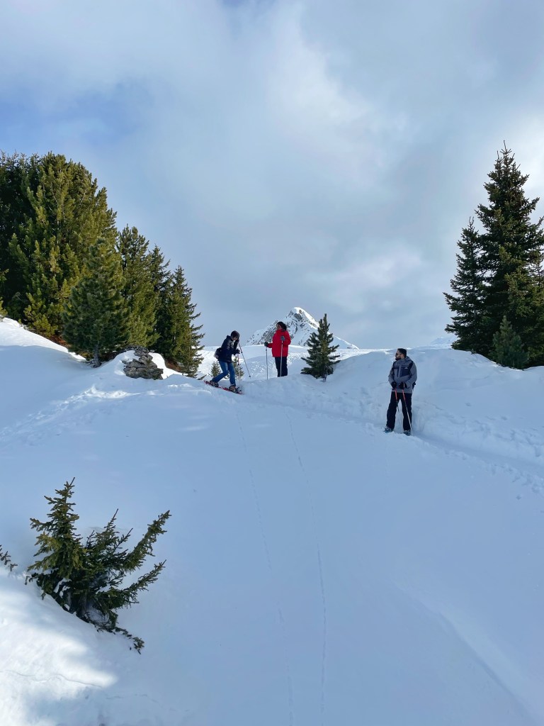 J’ai délaissé les skis et la vitesse pour les raquettes et la lenteur, mais aussi l’équilibre et la tranquillité. Peu de monde sur les chemins de traverse que l’on emprunte chaussé de ces planches de plastique à crampons. Pas d’attente interminable pour les remontées mécaniques.